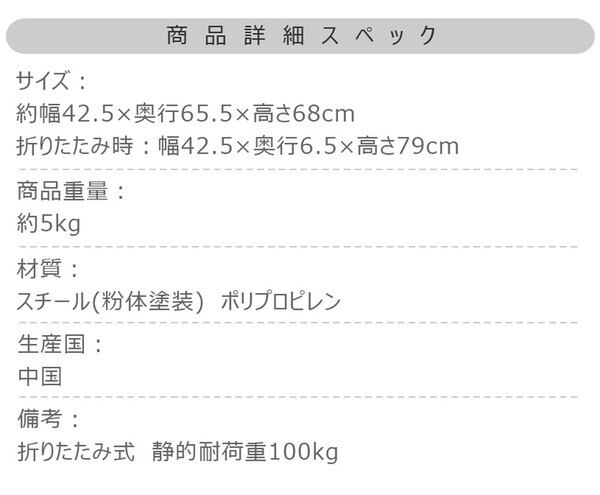 (折りたたみ時:W42.5×D6.5×H79) (単位cm)